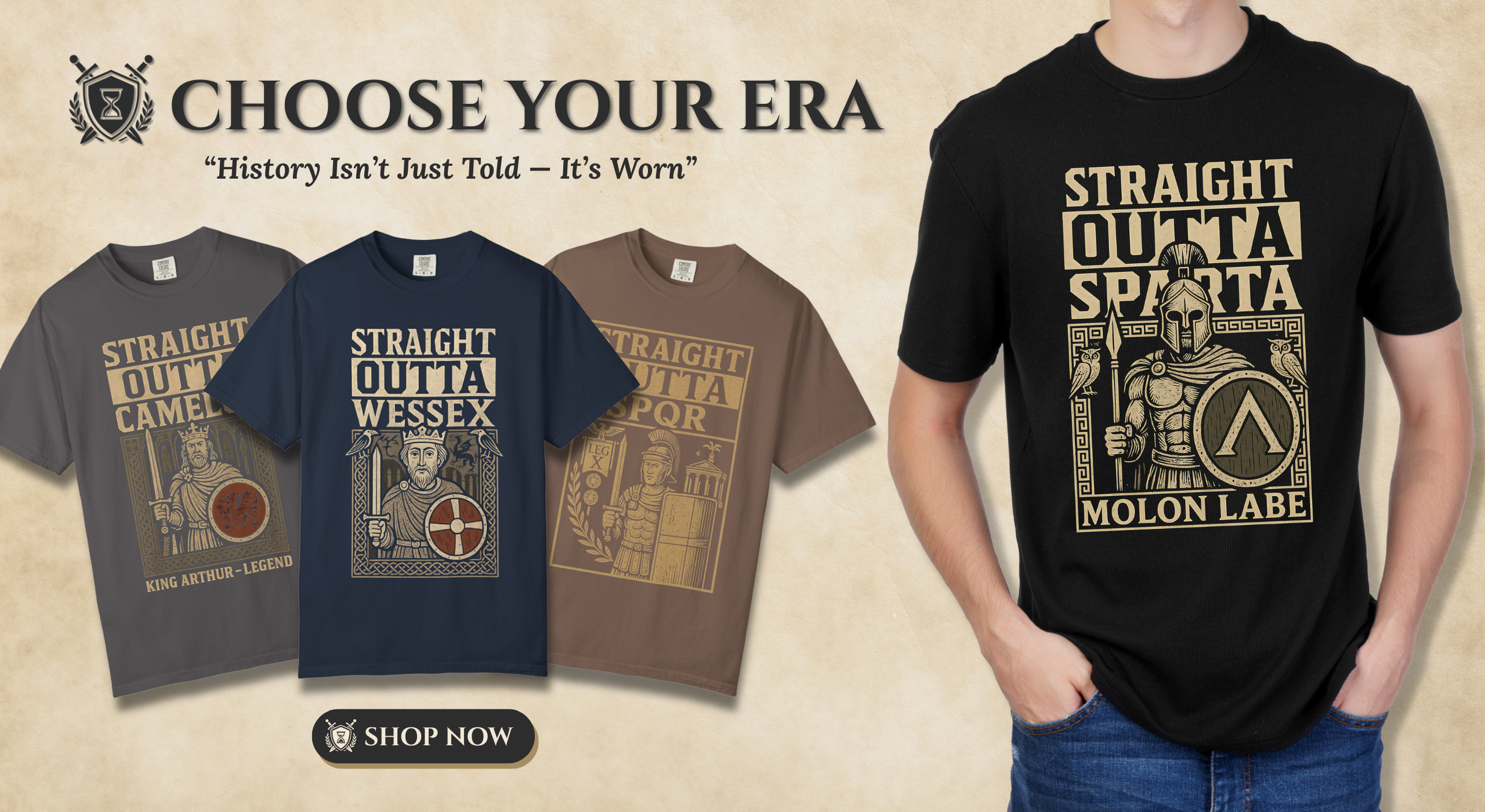 At Choose Your Era, we turn legendary symbols into wearable statements. Inspired by the greatest ages of the past, our designs are made for the thinkers, warriors, and everyday history nerds who live for the details and dream of the past...