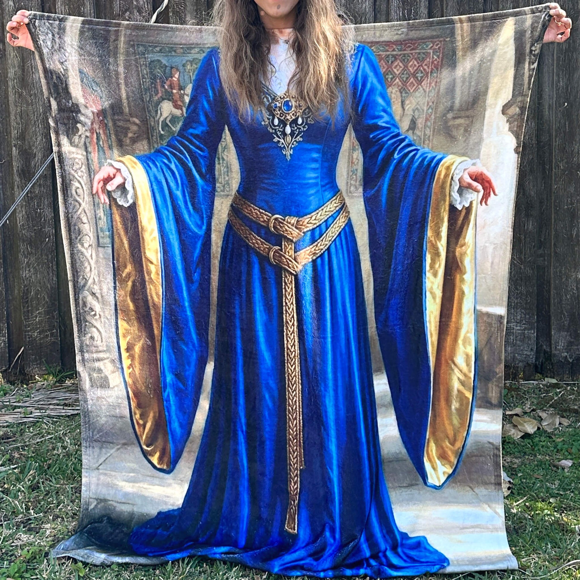 Designed to drape you in the splendor of the 13th Century, this blanket features a regal, life-sized print of a Medieval Noblewoman. It captures the essence of a princess or queen, allowing you to wear the fashion of dynastic power without the weight of the crown.