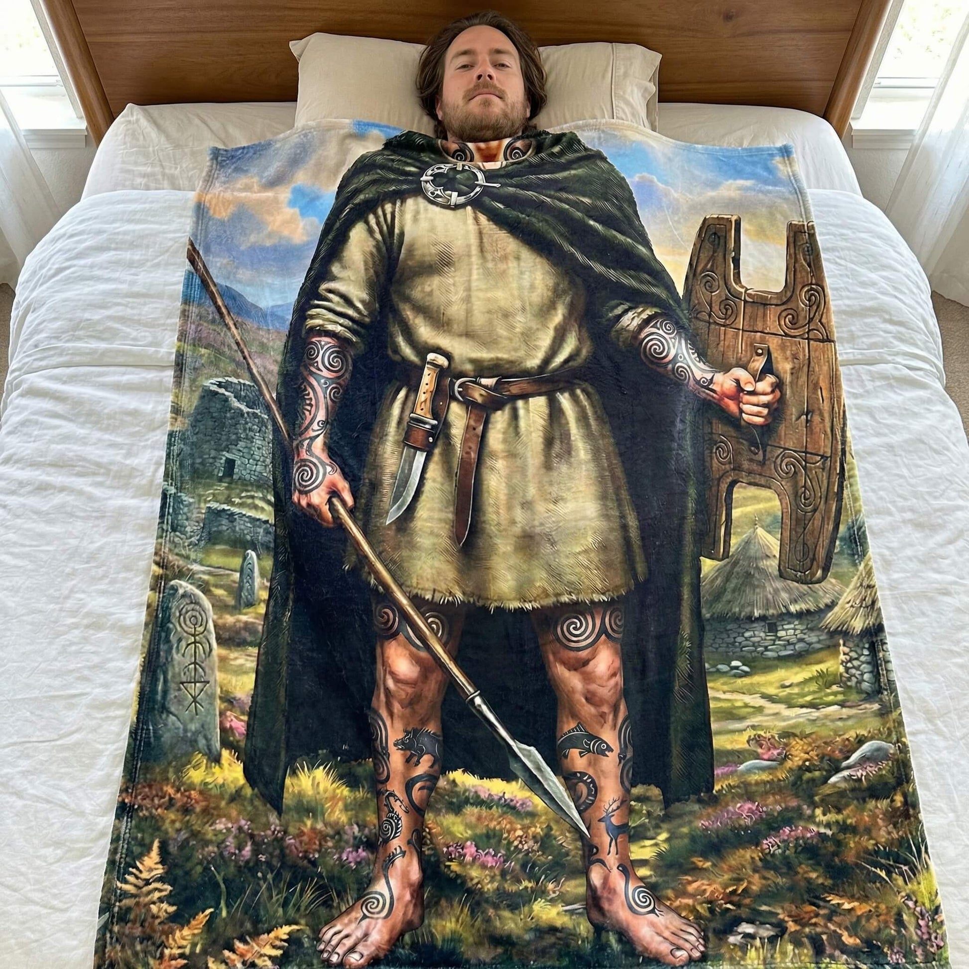 Designed to drape you in the rugged mists of the Iron Age, this blanket features a fierce, life-sized print of a Pictish Warrior. It allows you to become one of the "Painted People" who held the line of the North against the legions.